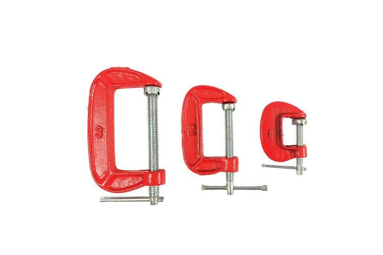 Set Includes: (1) 1-Inch C-Clamp ; (1) 2-Inch C-Clamp; (1) 3-Inch C-Clamp;